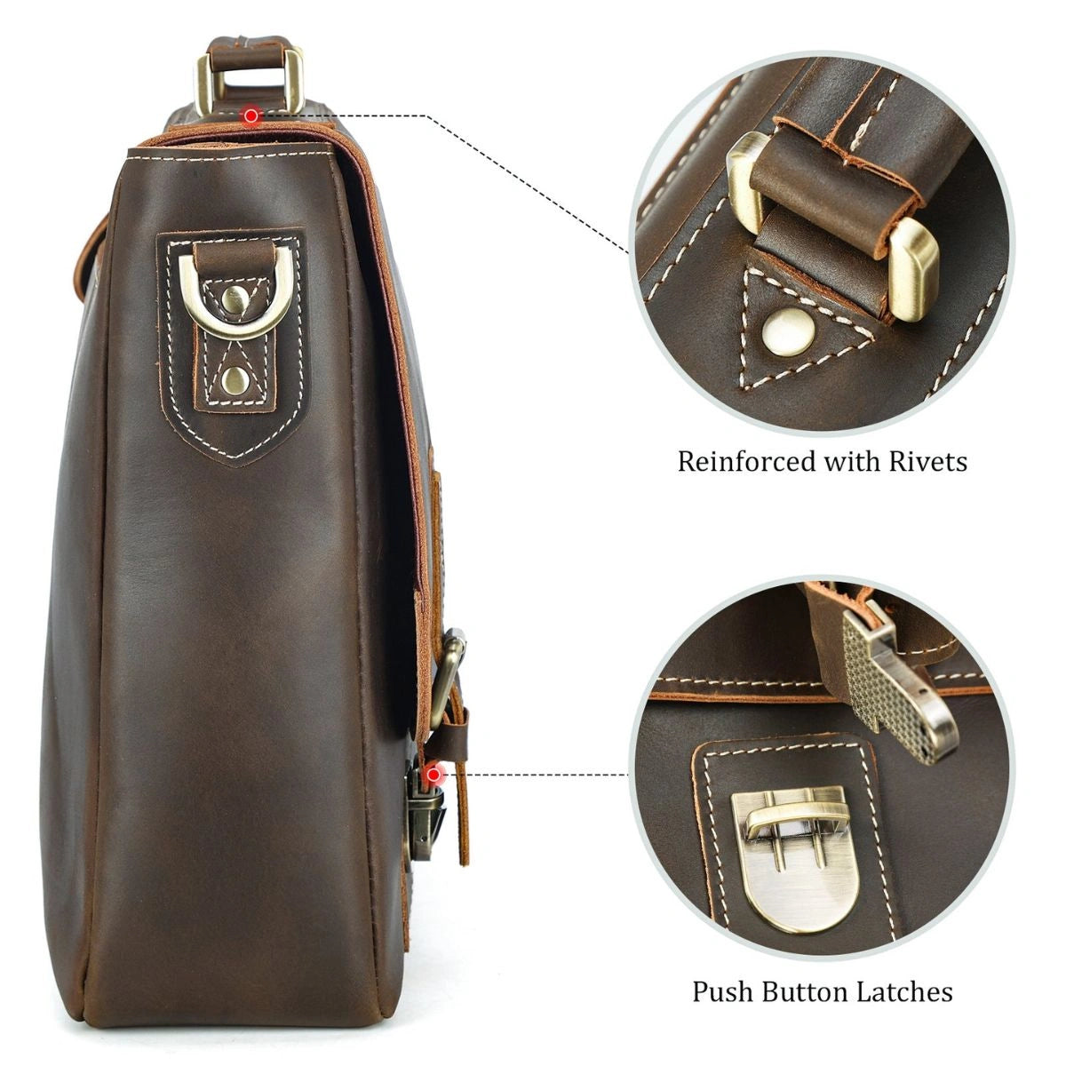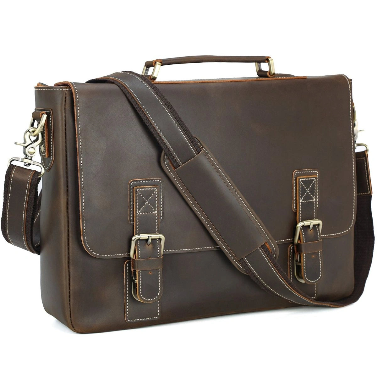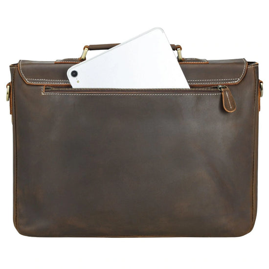 Made from premium full-grain cowhide leather and reinforced with robust YKK metal zippers, this briefcase delivers both style and strength. The richly tanned vintage finish, accented with antique brass hardware and contrast stitching, adds a touch of heritage charm that evolves beautifully with time.