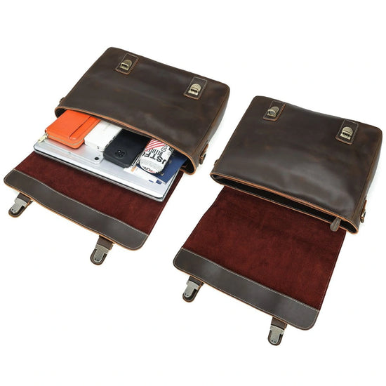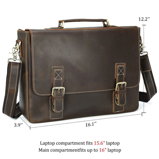The top flap features dual buckle closures that keep your belongings secure while adding refined character. Inside, a padded laptop compartment fits up to 16 inch laptop, while the spacious main section accommodates up to 17 inch laptops—perfect for files, tech, and daily essentials. Multiple interior pockets, including slots for your phone, pens, and accessories, keep everything neatly organized.
